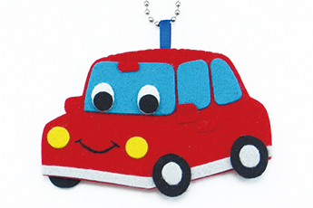 型抜き済みフェルト、刺しゅう糸、リボン、ボールチェーン、ネームラベル、作り方説明書