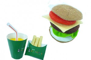 SUN FELT > ホビー > 手芸キット > 6時間以上 > ままごと文庫<ハンバーガー:型紙> > ドリンク・ポテト&ハンバーガー アップ