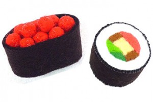 SUN FELT > ホビー > 手芸キット > 6時間以上 > ままごと文庫<おすし:型紙> > いくら軍艦巻き&のり巻き アップ