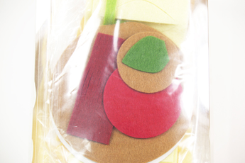 ■キット内容:型抜き済フェルト各種、厚紙、ビーズ、プラビーズ、ワックスコード、綿、刺しゅう糸、原毛、カップ、作り方説明書