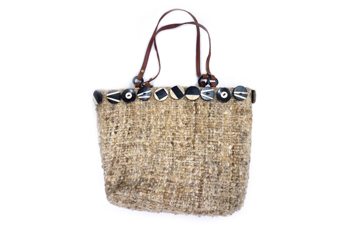 天然100%シルクをざっくりと仕上げたバッグです。水牛の骨で出来たボタンがアクセント。