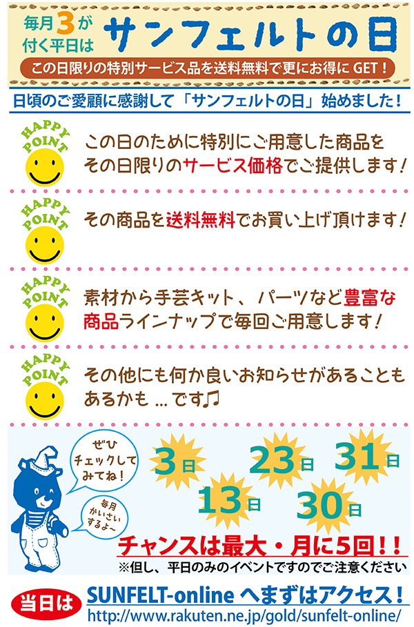 SUN FELT > What's New > 【お知らせ】2月よりサンフェルトの日始めます! > サンフェルトの日