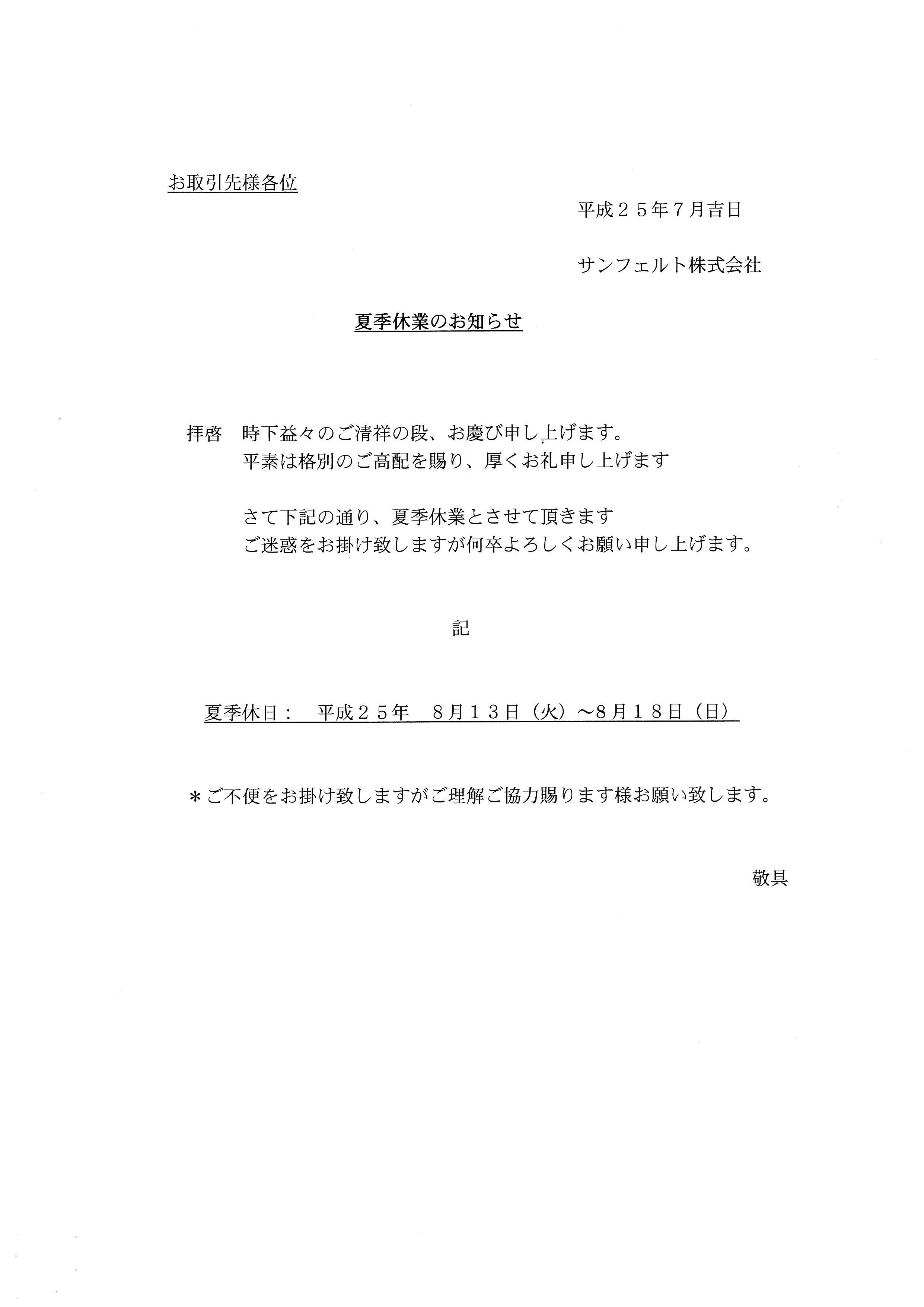 2012.11.22 サンフェルトECサイトオープンのお知らせ